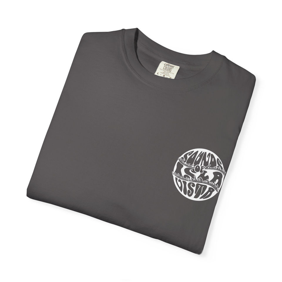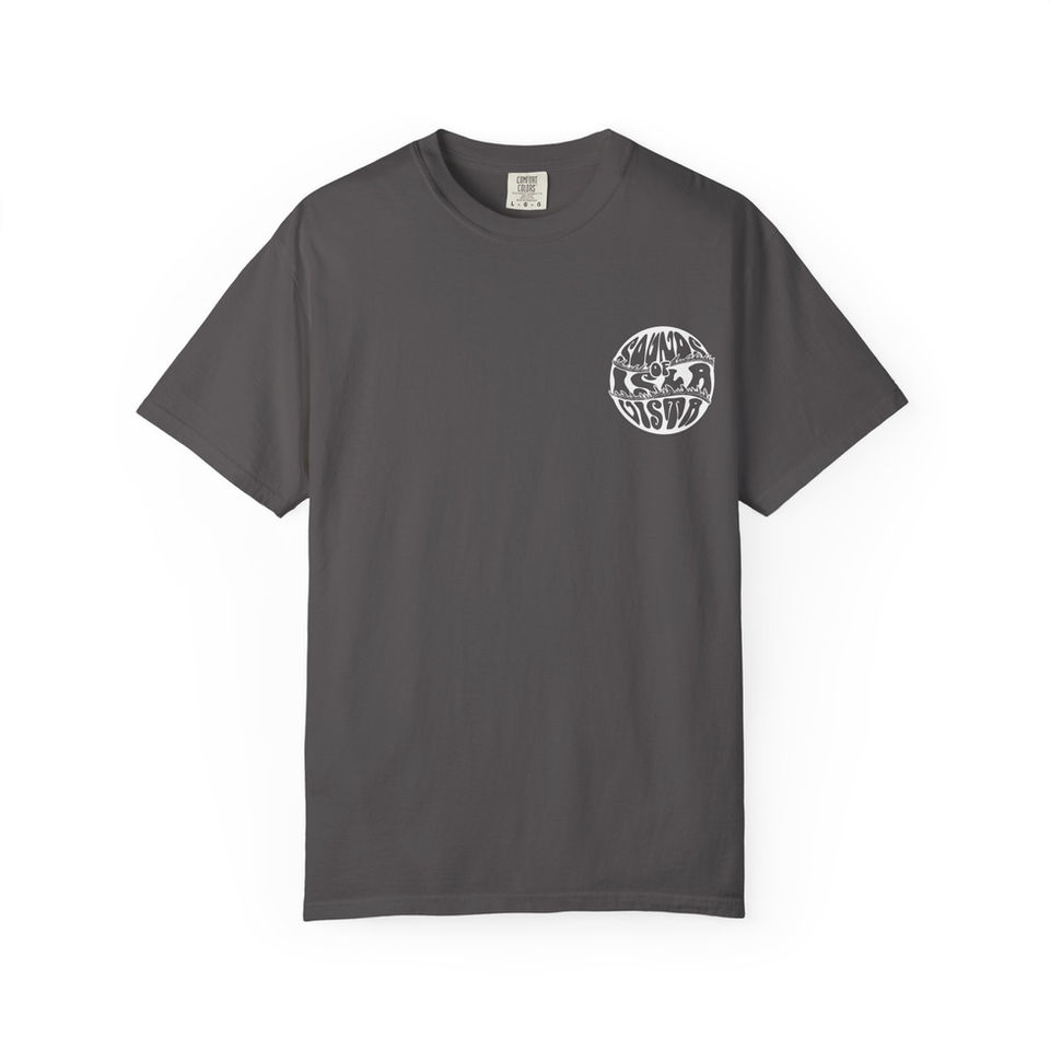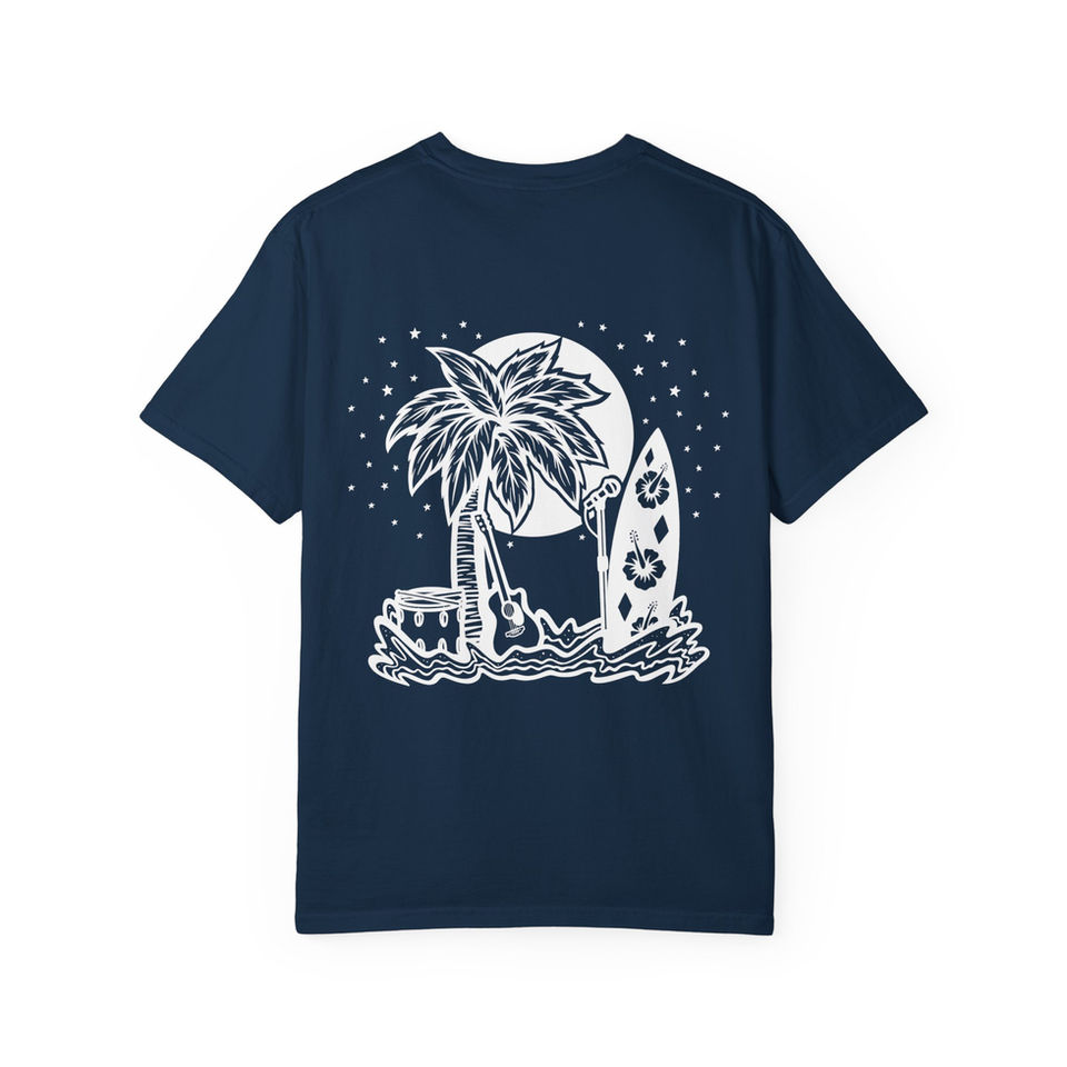 Celebrate the Isla Vista music scene with this fun t-shirt. Displaying the Sounds of IV logo on the front and a music/beach-themed design on the back, it's sure to be a hit at any backyard concert. Available in three dark color options for your pleasure. Half of the proceeds from this product will go to supporting the IV/UCSB music scene with the help of Sounds of IV.