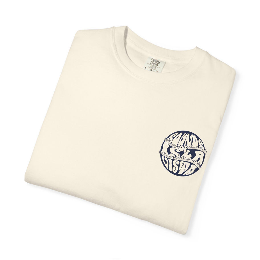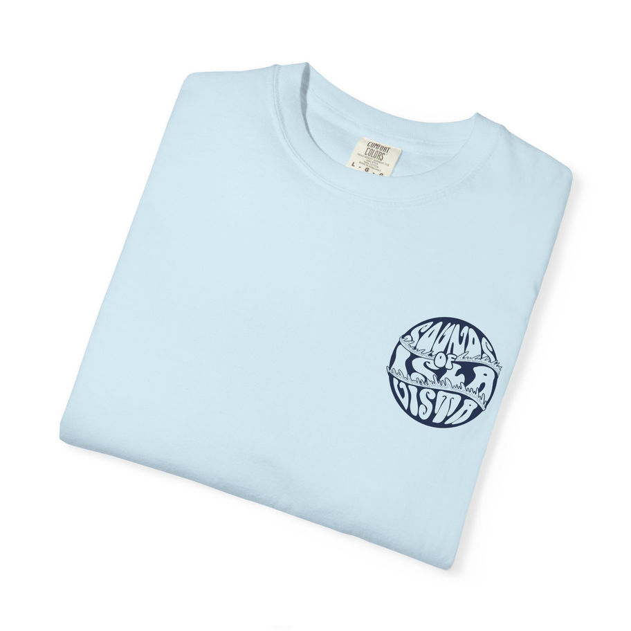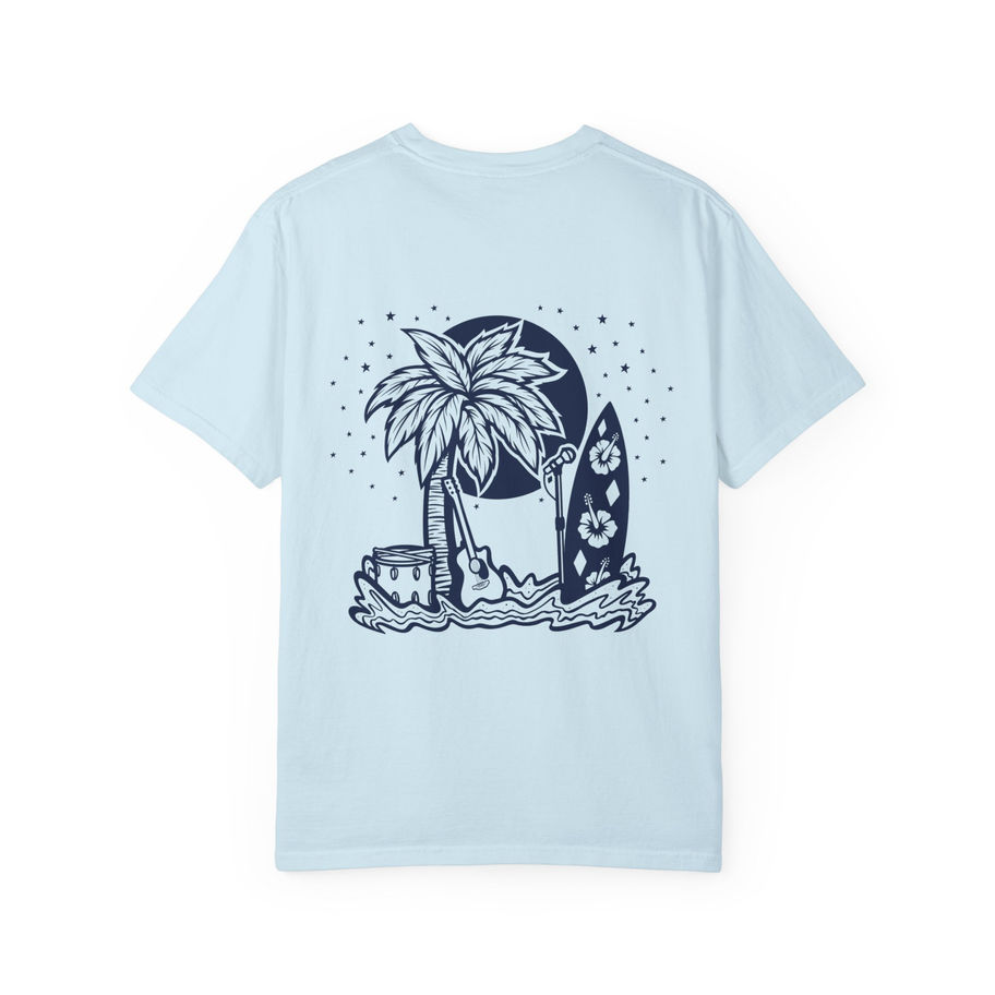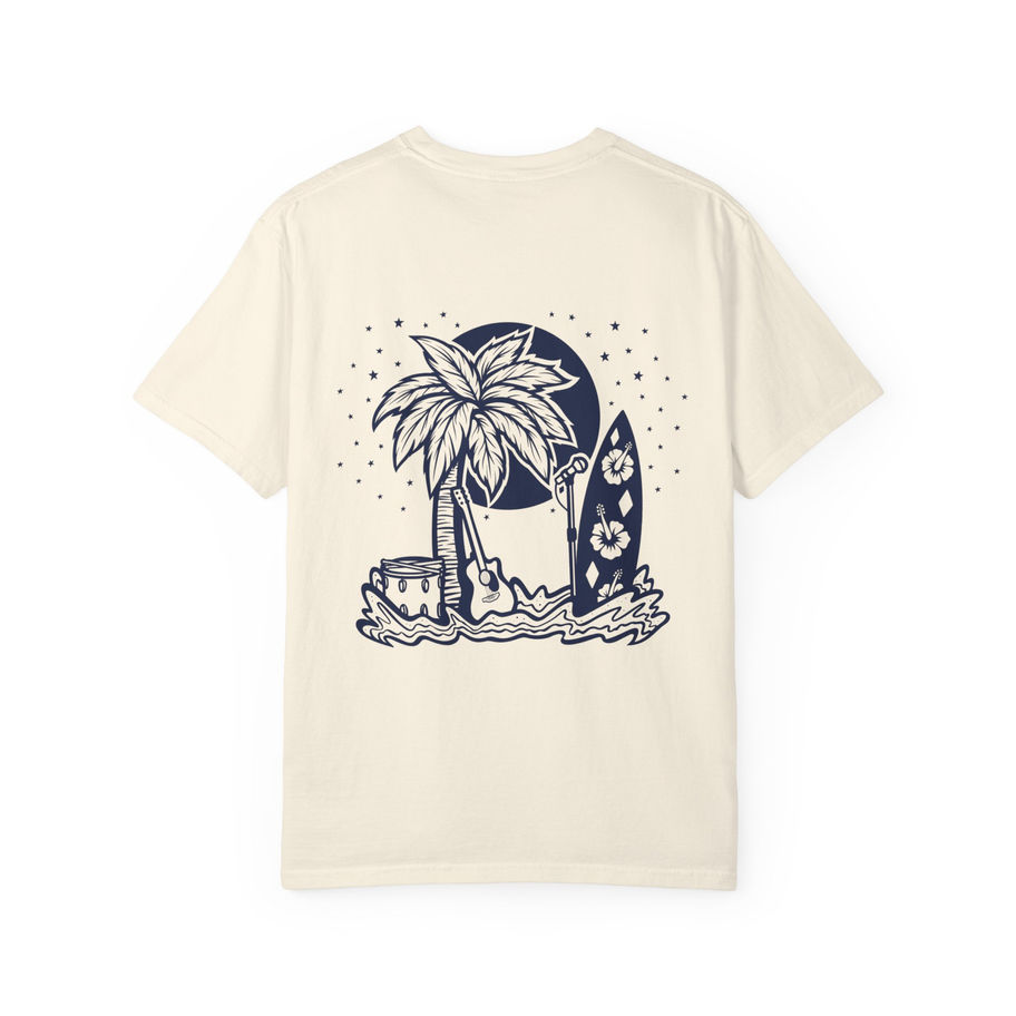 Celebrate the Isla Vista music scene with this fun t-shirt. Displaying the Sounds of IV logo on the front and a music/beach-themed design on the back, it's sure to be a hit at any backyard concert. Available in three color options for your pleasure. Half of the proceeds from this product will go to supporting the IV/UCSB music scene with the help of Sounds of IV.