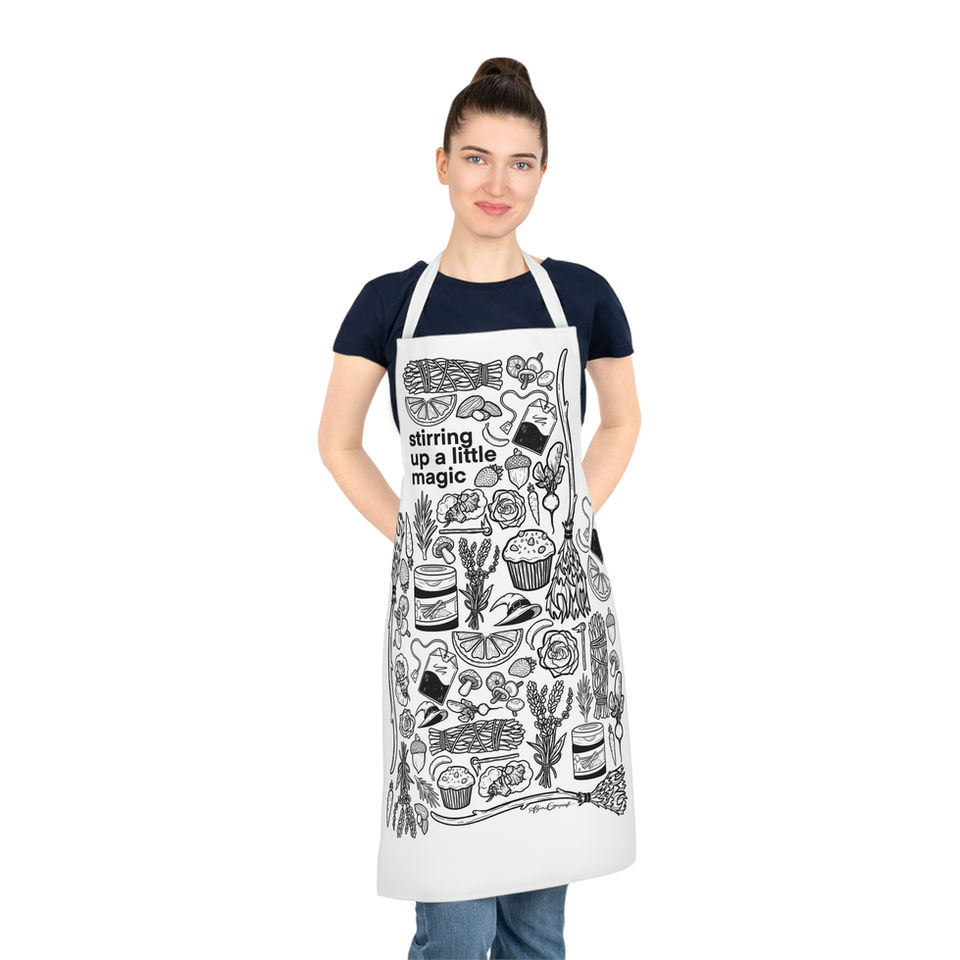 Great chefs require great style - and this magical apron delivers. Featuring snow-white loop & ties, this apron is made with 100% pre-shrunk polyester canvas - an ideal material for keeping splashes and stains at bay while you create tasty meals. With Alysa Greenwale's beautiful witchy artwork on the front, this apron will be a hit anywhere you cook!